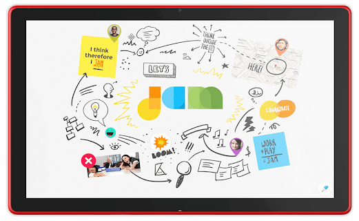 Jamboard es una pizarra digital que te permite colaborar en tiempo real por medio del propio dispositivo Jamboard (una pizarra digital de 55 pulgadas que funciona con los servicios de G Suite), un navegador web o la aplicación móvil.